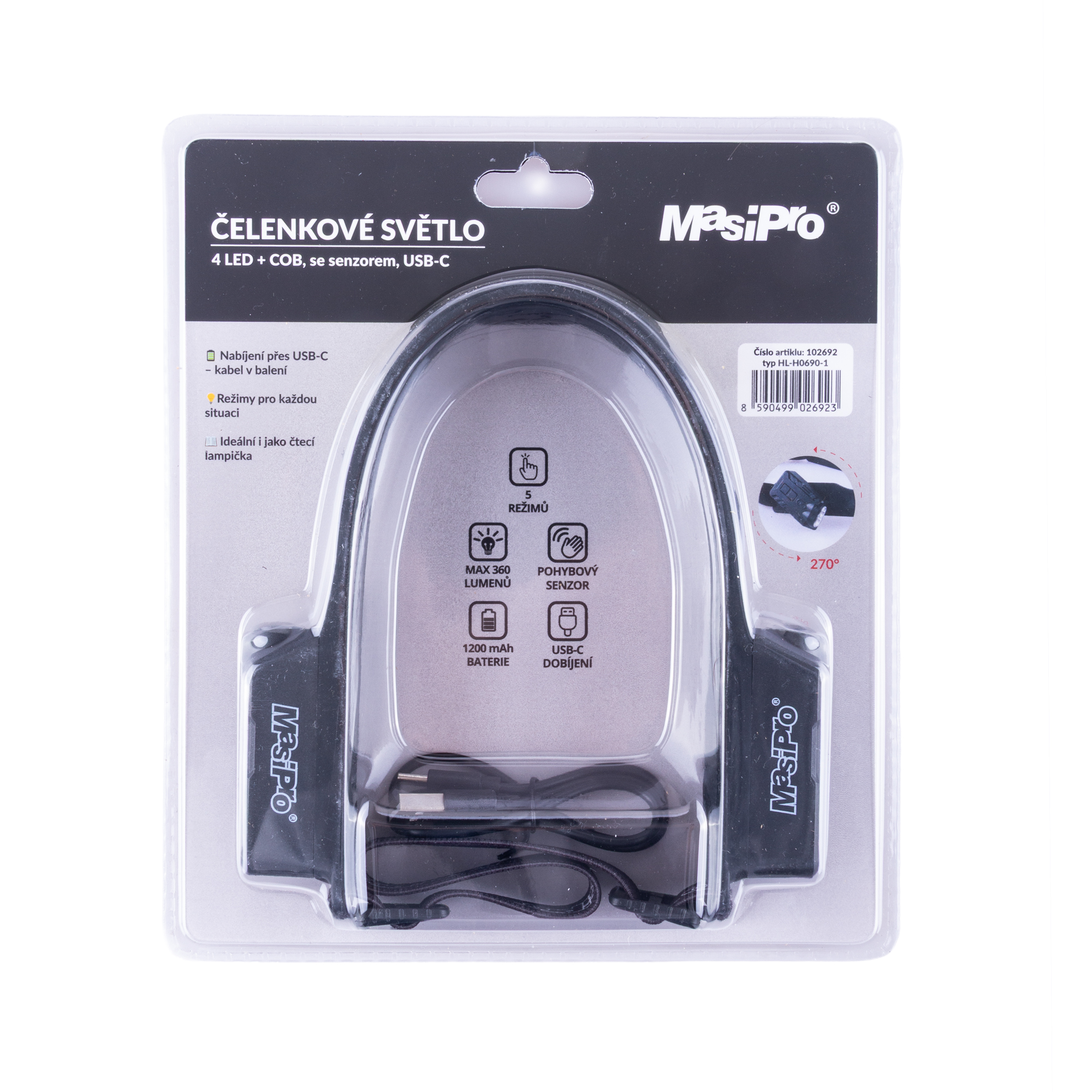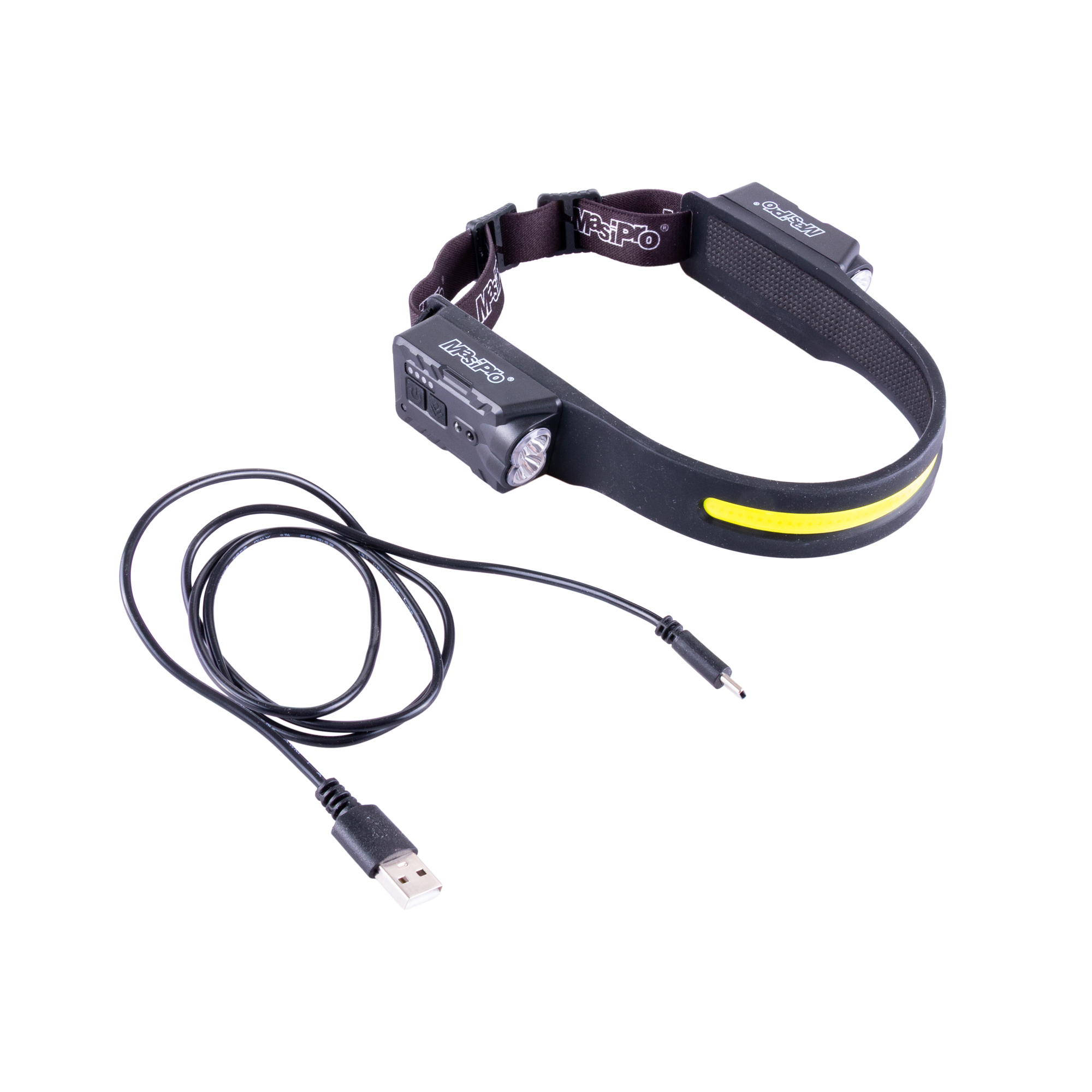 Svítilna LED+COB čelovka USB-C